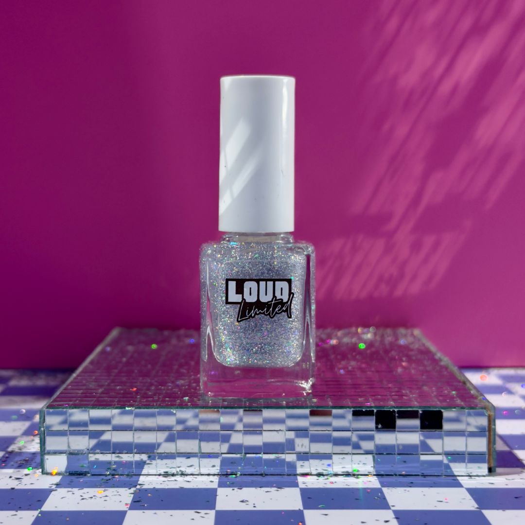 Holo flakes and aurora flakes in a topper that’s trying to keep it cute through the spiral. Made for the neurodivergent babes who RSVP’d “yes” and immediately regretted it. Sparkly, overstimulated, and still showed up.