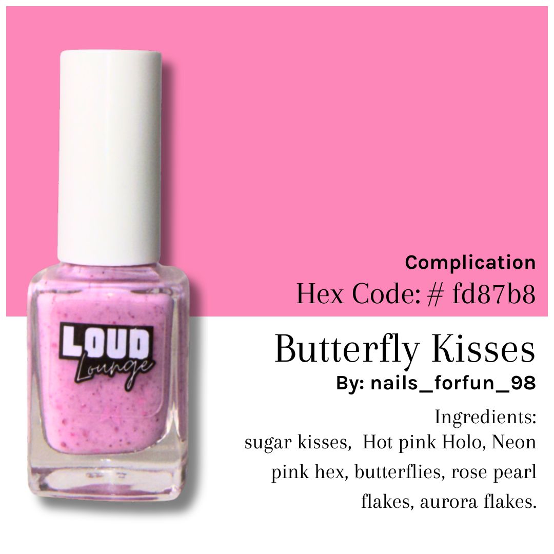 Ingredients: sugar kisses, Hot pink Holo, Neon pink hex, butterflies, rose pearl flakes, aurora flakes.
