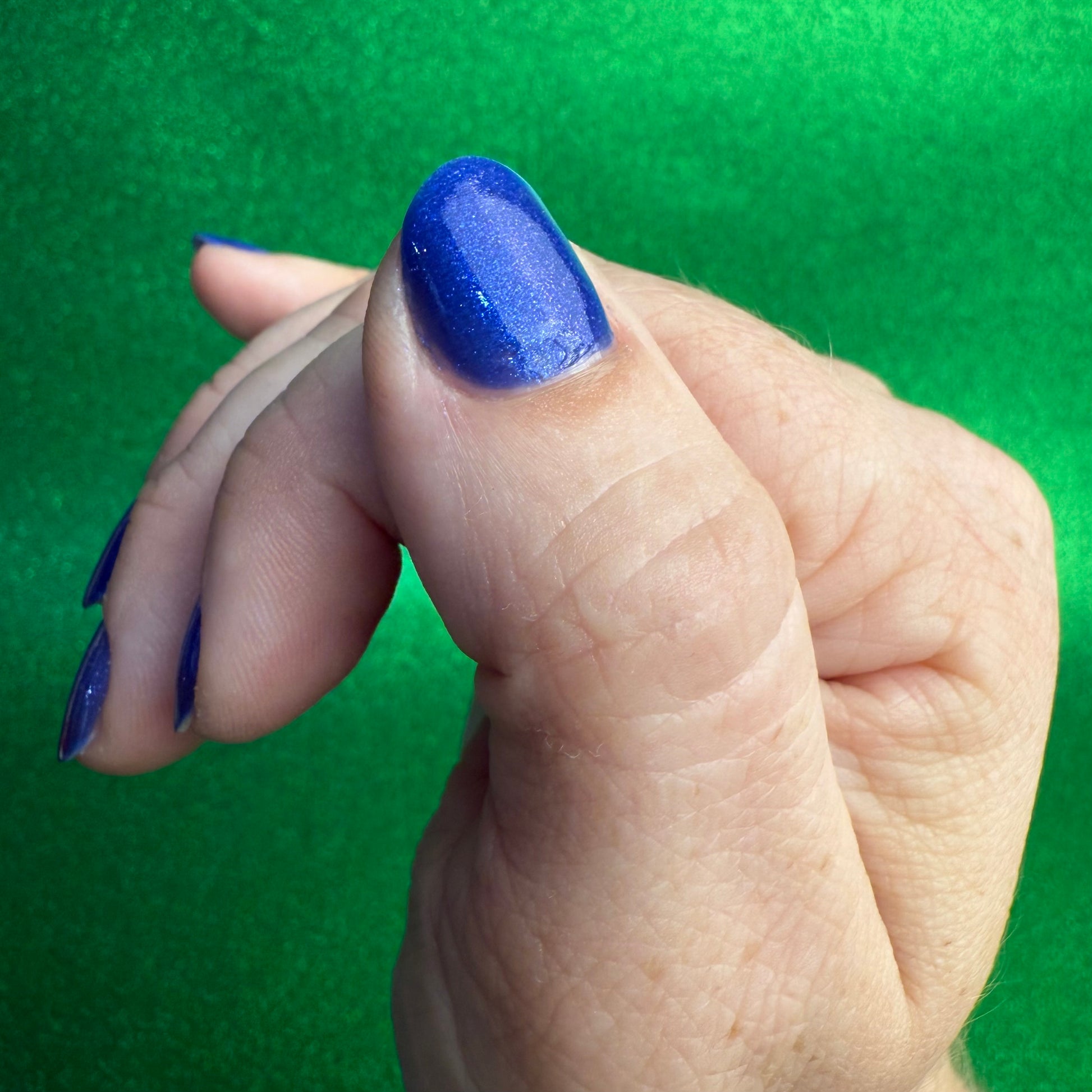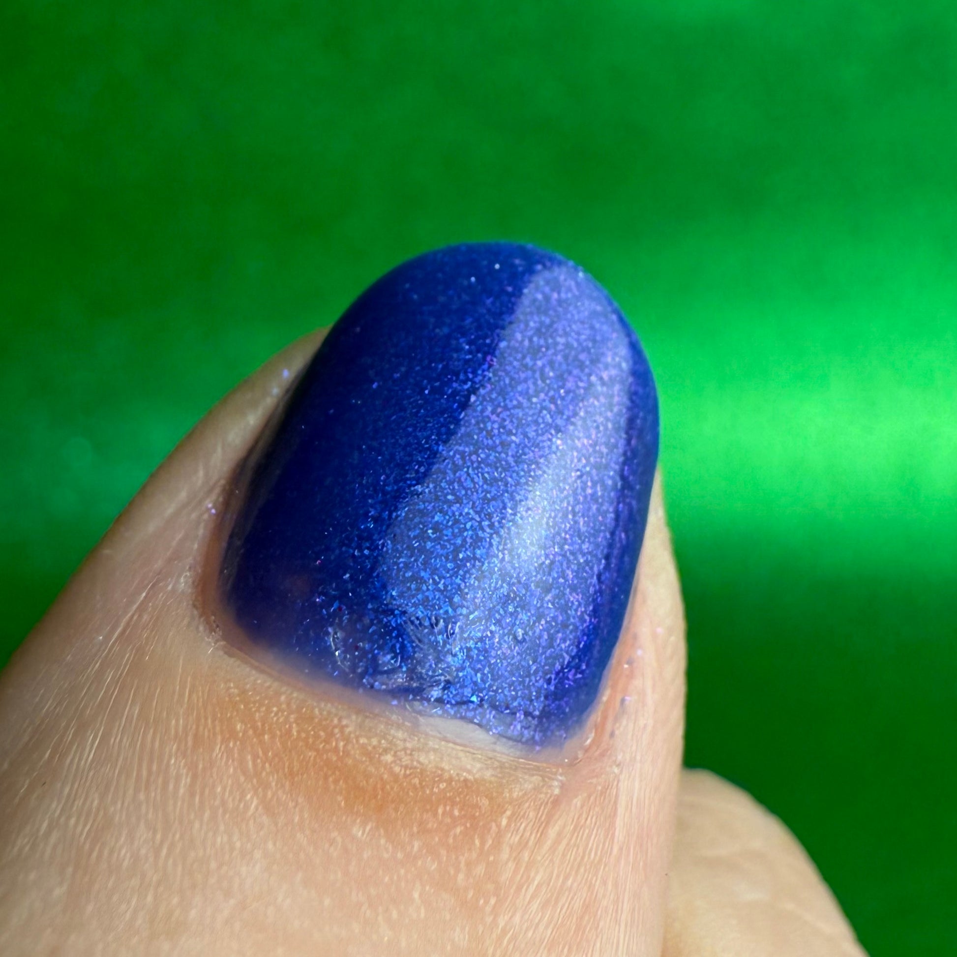 Get ready to rule the holidays with Cheermeister, a polish fit for Whoville royalty! This deep blue jelly is packed with purple reflective glitters and a mesmerizing chameleon shimmer that shifts from blue to purple—perfect for stealing the spotlight at any Christmas celebration. Whether you're raising a toast or roasting some beast, this shade is a celebration in a bottle!