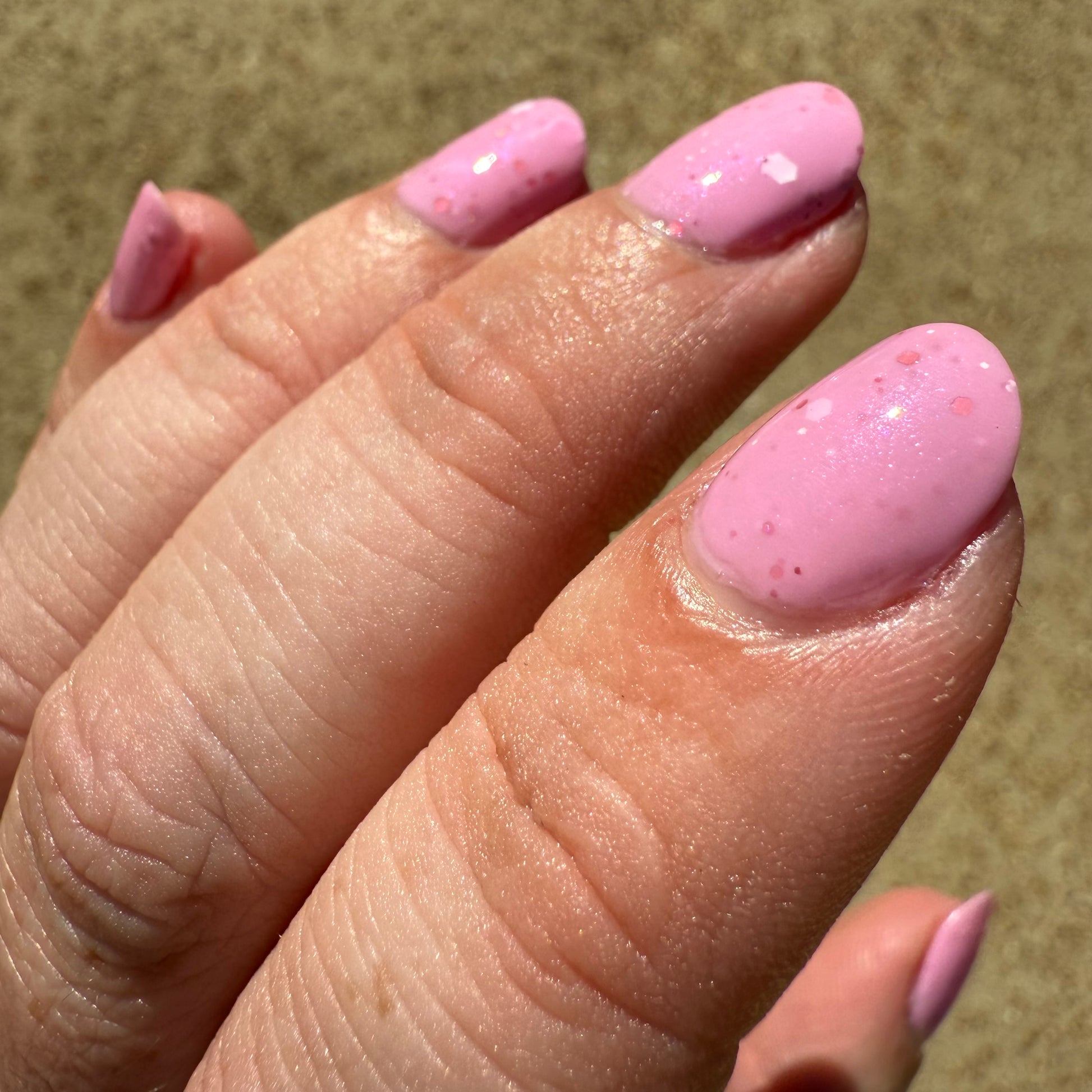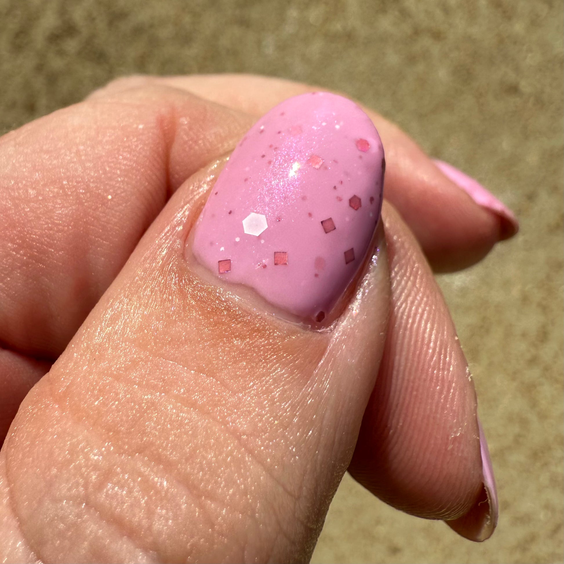 Sweet, sparkling, and full of heart, Cindy Lou is the polish that embodies holiday kindness! This pink crelly is sprinkled with white and pink holo splatter glitters, creating a soft, whimsical look that's as charming as Whoville's tiniest hero. Perfect for those who know the true meaning of Christmas, this shade will have your nails shining with pure holiday cheer!