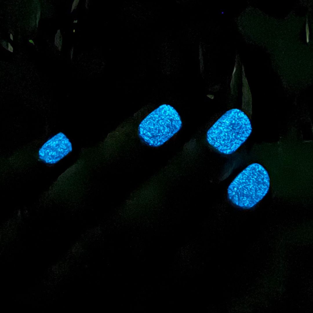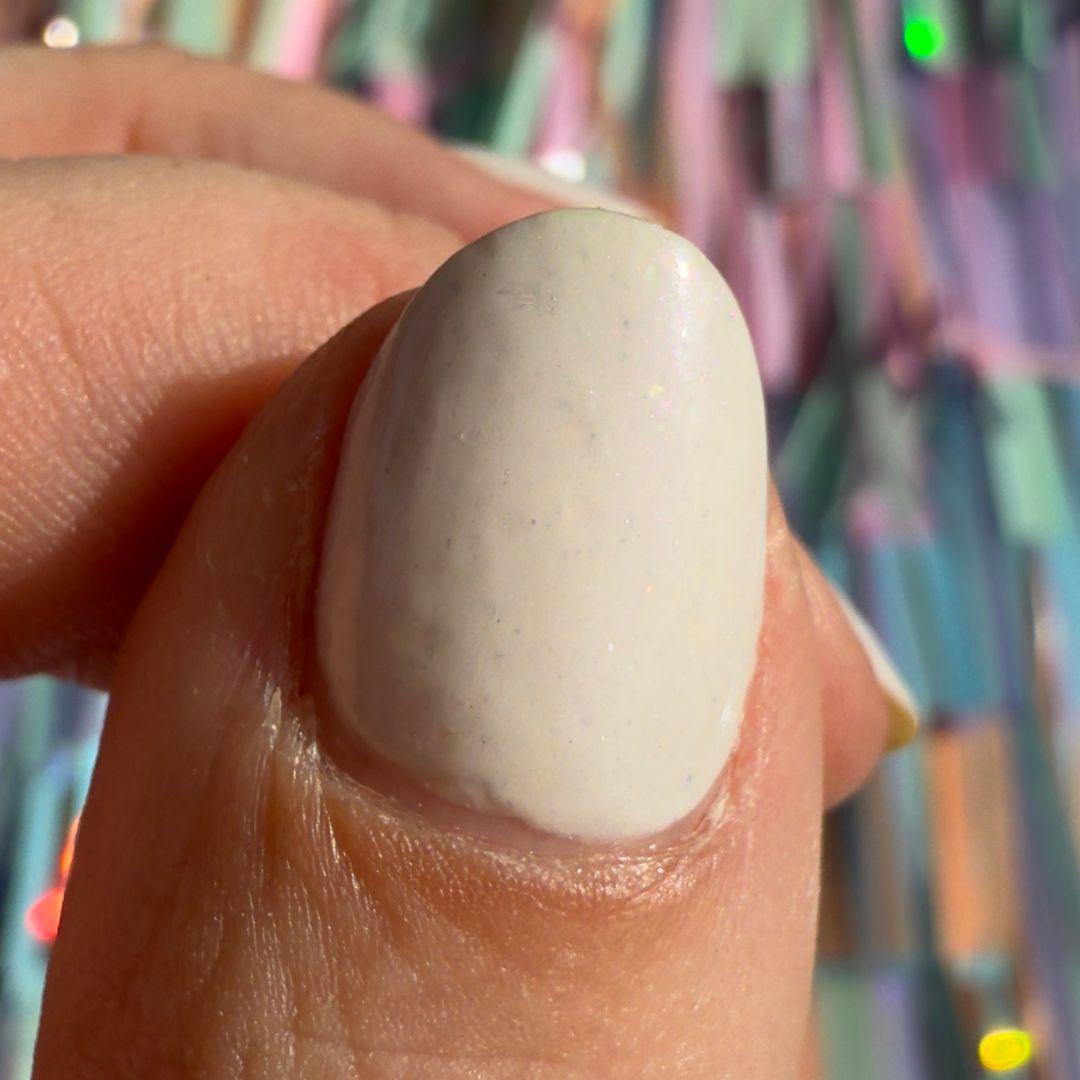 Ghostie Glow is a milky white crelly that comes alive after dark with a blue glow. Shimmering with purple aurora shimmer, holo flakes, and iridescent flakes, this shade feels like a soft ghostly whisper drifting across your nails. Sweet, sparkly, and perfectly eerie, it’s the glow you didn’t know you needed.