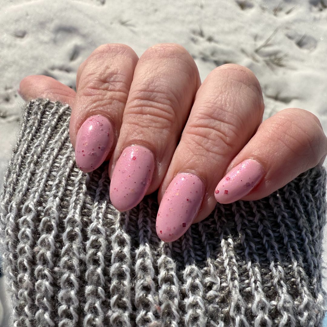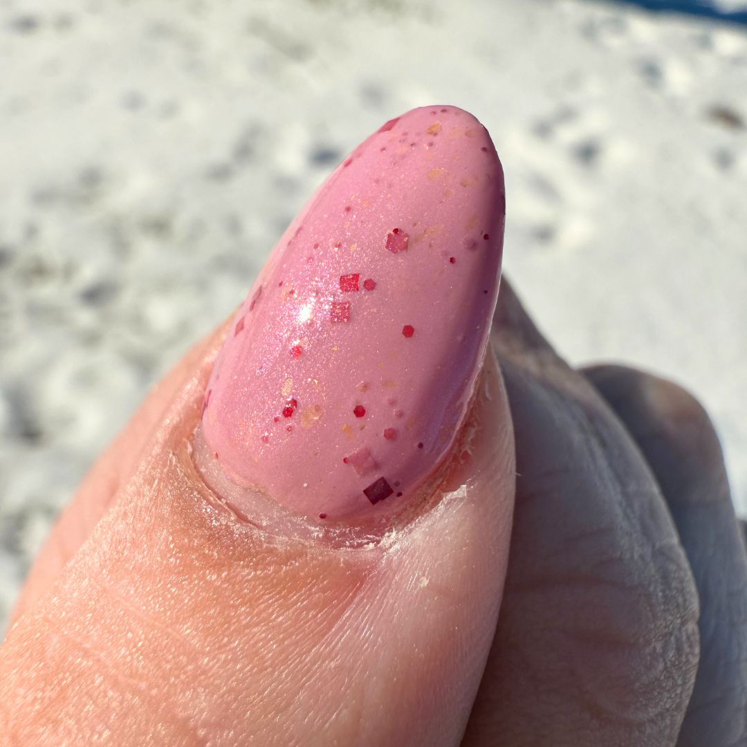 This soft pink crelly is infused with red holographic glitters, glowing red-violet shimmer, and subtle gold flakes, creating a rebellious yet elegant look. It’s a shade that embodies the beauty of decay while embracing empowerment. Perfect for letting go of what no longer serves you and stepping into your fullest potential.