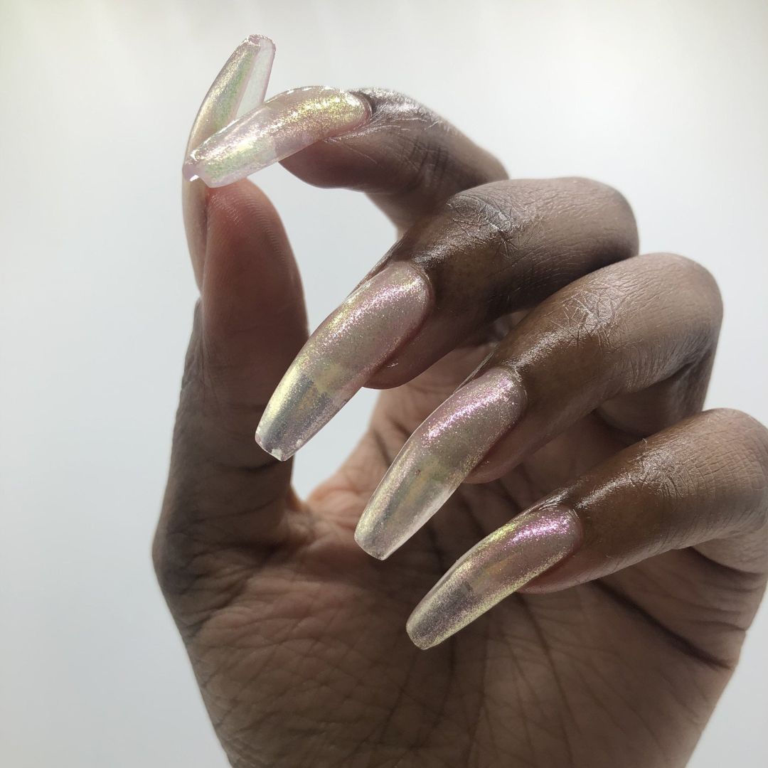 Kassidy is that little dose of EXTRA we all needed. This sheer shimmery polish has pink and gold microflakies running throughout. Wear it on its own for a barely-there unicorn look, or layer her over any color. You will not be disappointed. Fact: Our flat paddle brush makes it super fast and easy to apply to those littles and the formula dries faster than they can sass you.