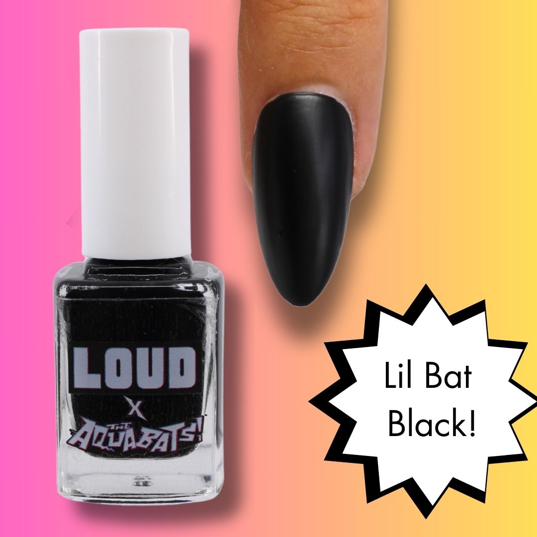 Unleash your inner Aquacadet with this matte Lil Bat Black. Inspired by the quirky mascot of the Aquabats, this fun twist on a classic shade captures the essence of our favorite bat with loads of personality. This matte black finish delivers a bold look that's sure to turn heads.