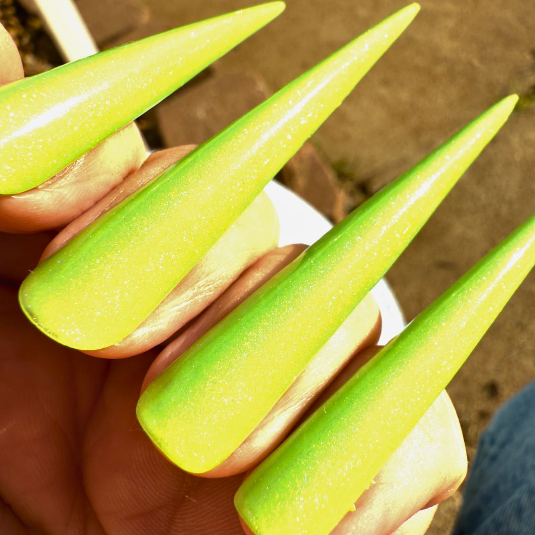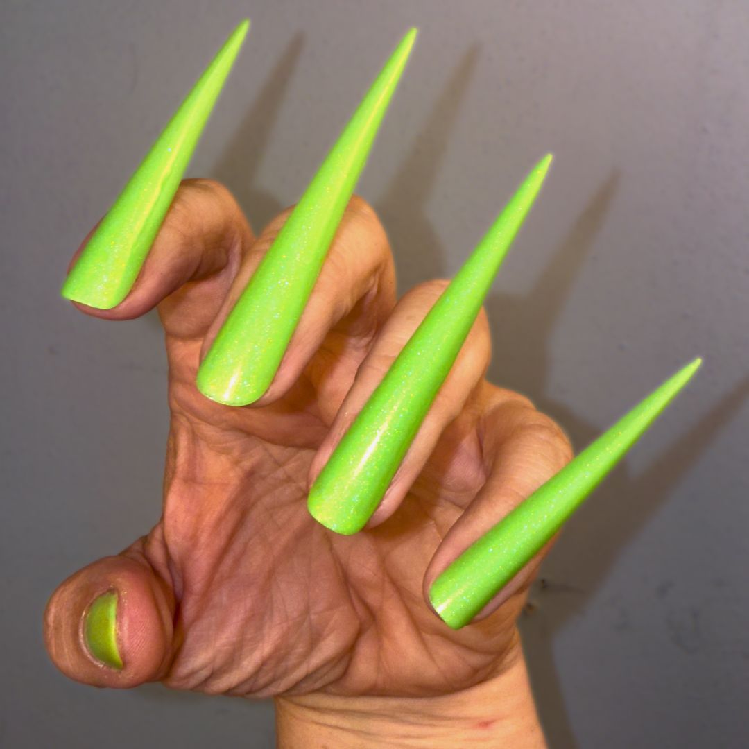 Get ready to abduct some attention with this neon green holographic polish that glows in the dark—perfect for any BABBS from another planet! This shade will have your nails shining brighter than a UFO on a clear night. So, whether you’re out for a midnight stroll or crashing a costume party, your tips will be out of this world!