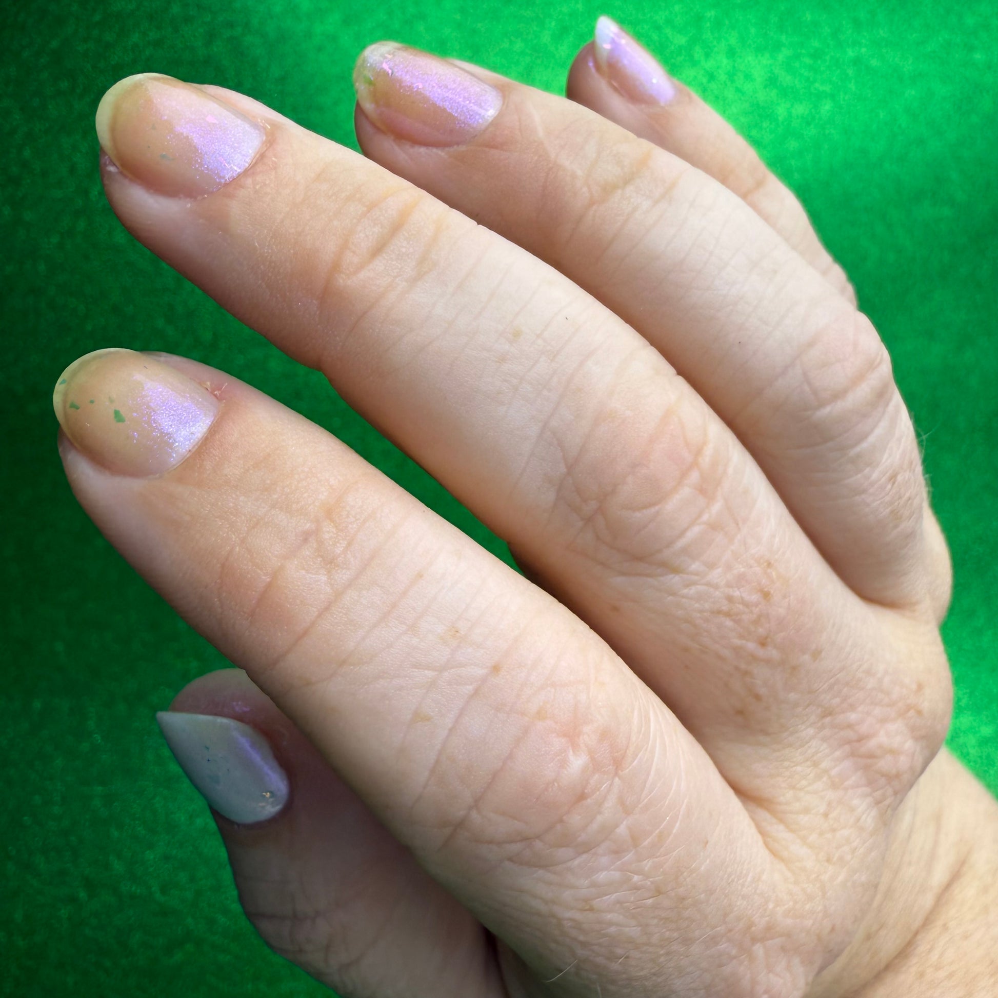 Swatched over white on my thumb and just in 2 coats on the rest of the hand.