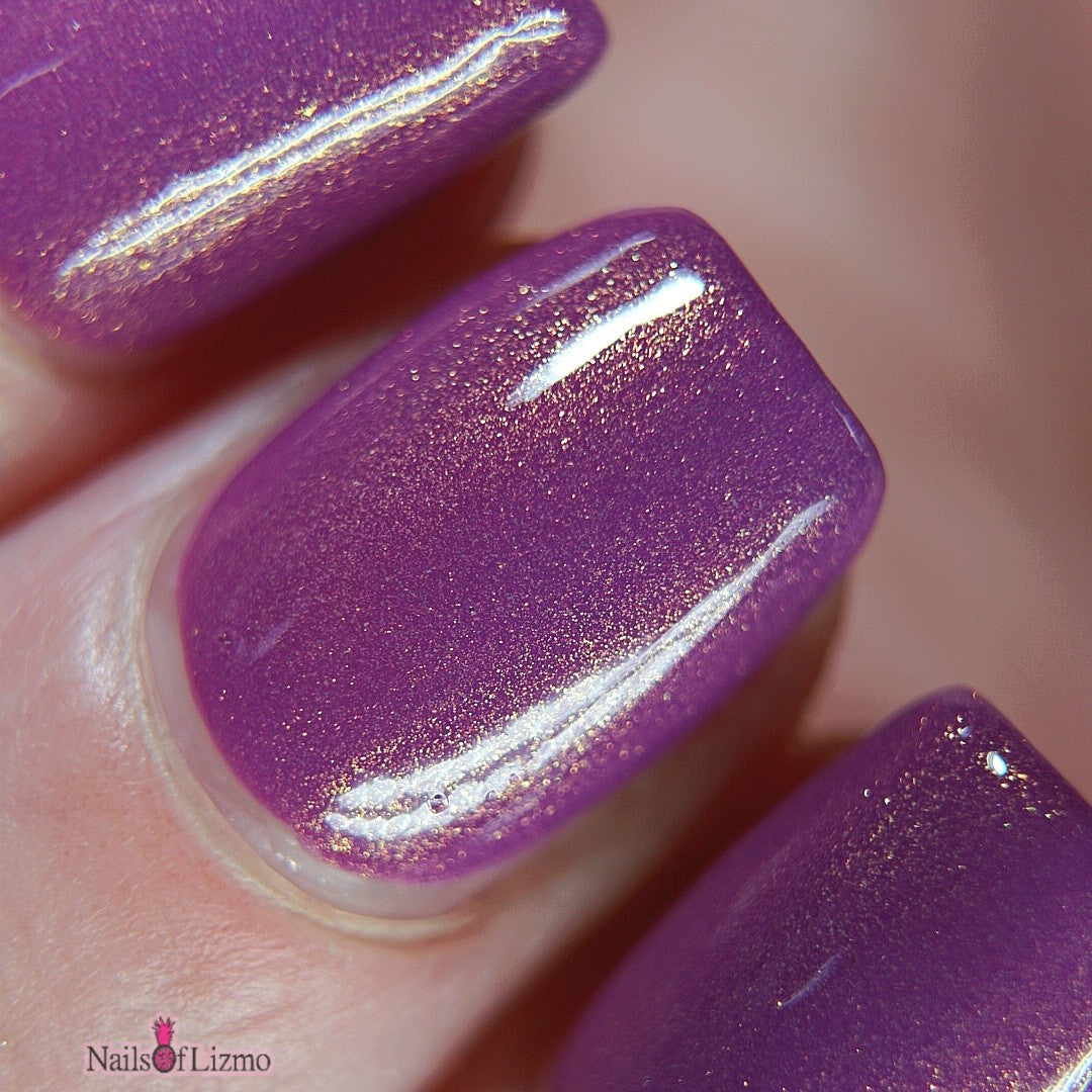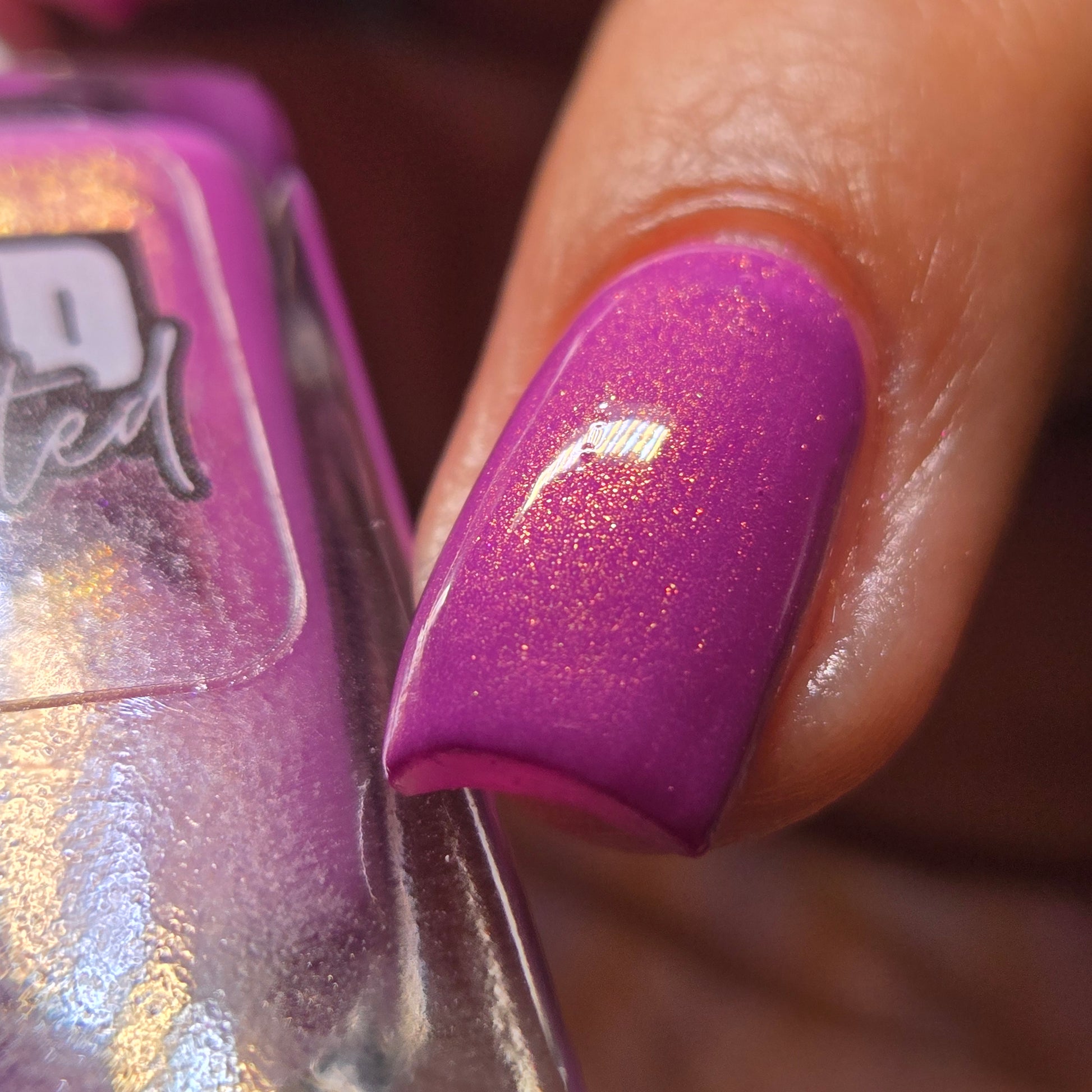 A bold spring crocus purple crème with a gold aurora shimmer that’ll have you serving jawline-level confidence. Sure, today’s kids call it mewing, but in the ‘90s, we were just chewing gum aggressively and hoping for the best. Either way, your nails will be snatched.
