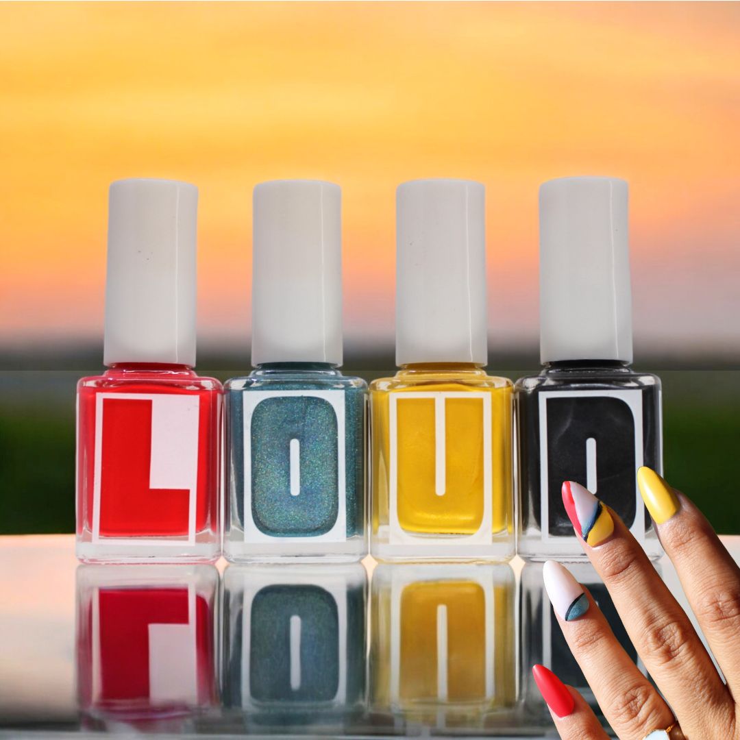 Start with our sticky base coat, apply LOUD polish in two coats and finish with our quick-dry top coat. Don't forget to cap the tips. Be sure to roll, not shake, the polish to avoid air bubbles.